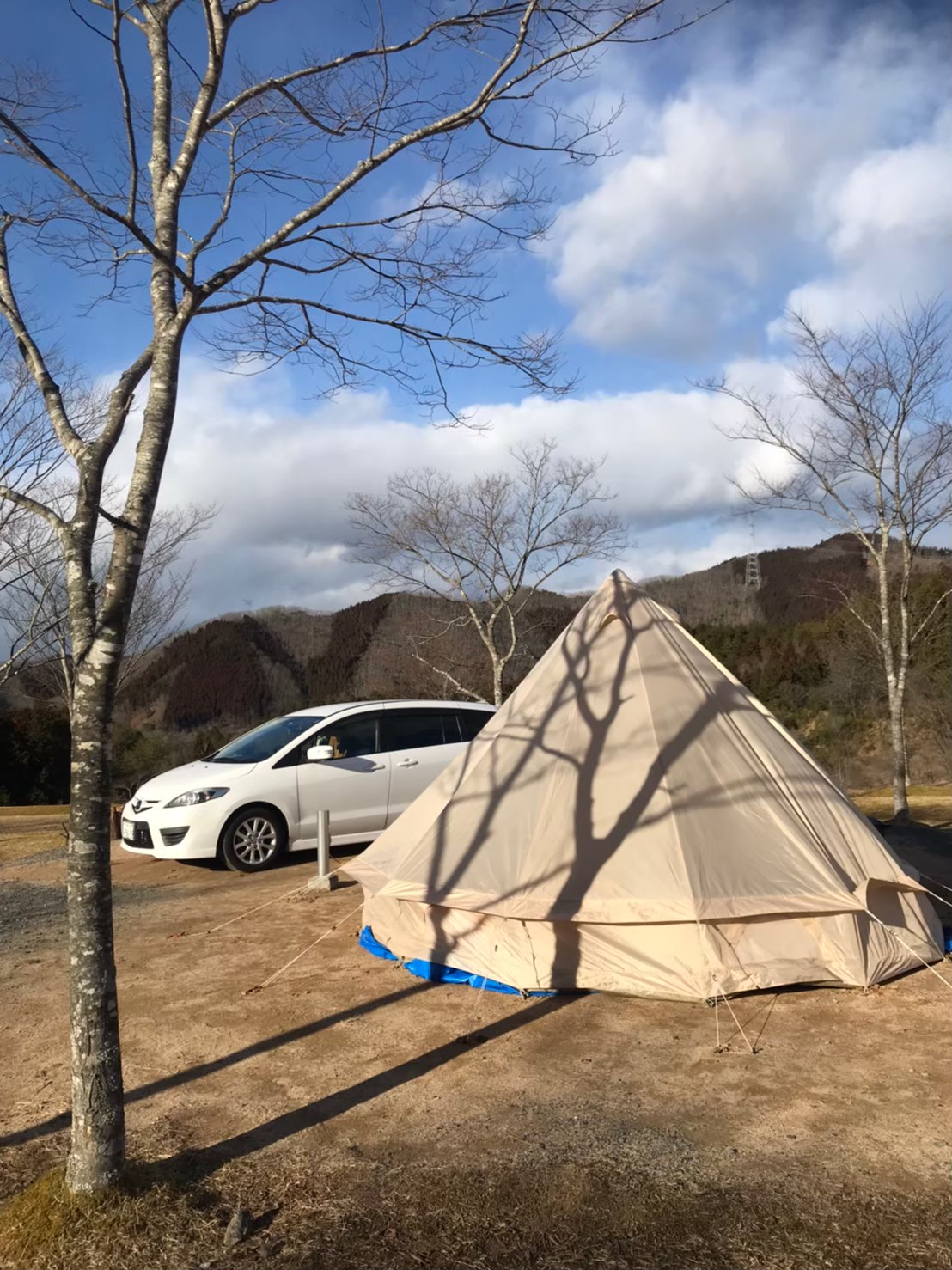 車をテントのすぐ側にとめれるので準備・片付けがスムーズにできとても楽です![ サイト詳細 ]