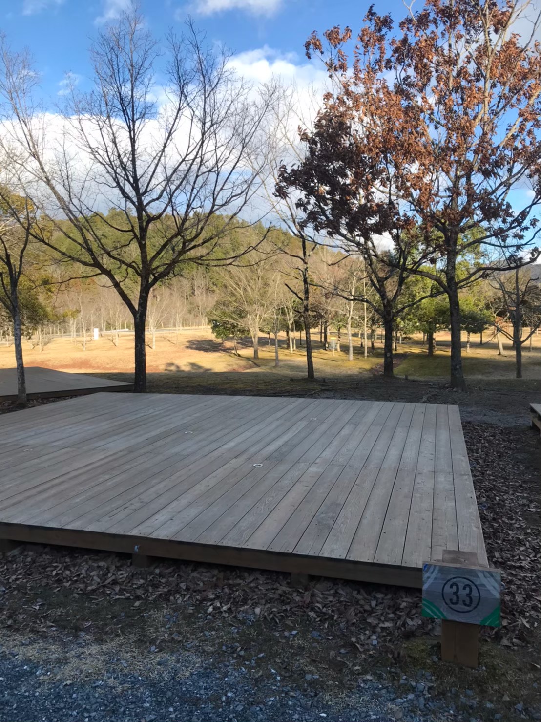 ウッドデッキの上でキャンプ!すぐ近くに炊事場・トイレがあるのでとっても便利!